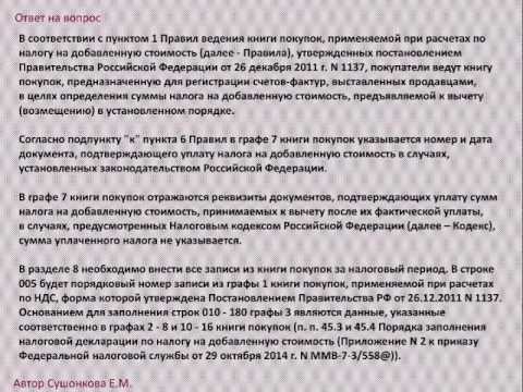 Ответ на вопрос Отражение счета фактуры в книге покупок и декларации