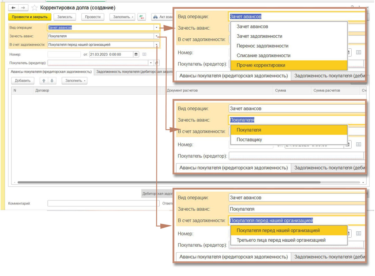 Раздел: Покупка. Тема: Как в 1С перенести задолженность с одного контрагента на другого
