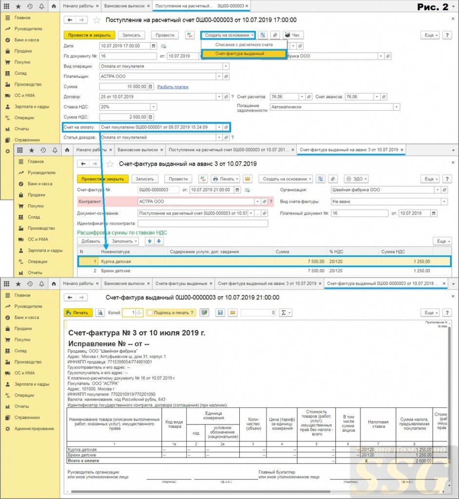 Счет-фактура на аванс в 1С 8.3 Бухгалтерия